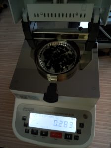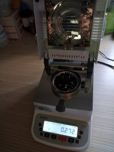 為了使測試過程中電池粉末水分儀將電池粉末烘干烘透,我們將電池粉末分散開來,以便溫度能滲透進(jìn)電池粉末內(nèi)部。取7克多電池粉末撒于不銹鋼托盤中,用鑷子將電池粉末平鋪均勻,為避免電池粉末經(jīng)過高溫度加熱后變性,我們將溫度設(shè)置在140℃,按“START”鍵開始測試,2分10秒后檢測結(jié)束,檢測數(shù)據(jù)顯示272%;