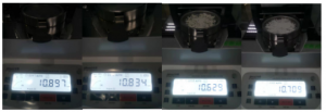 2.將防風(fēng)盤、支架、樣品盤一一裝好,接通電源,按下開機(jī)鍵,顯示屏進(jìn)入開機(jī)界面,首先按去皮鍵減去樣品盤重量,后將100g砝碼放入托盤進(jìn)行校準(zhǔn);