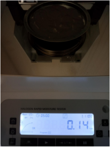 2、為了得到更精確穩(wěn)定的數(shù)據(jù)結(jié)果,在進行第二次測試過程前先等待陶瓷粉末水分儀降溫,待水分儀本身冷卻至40度以下時,這次我們一樣取8克多陶瓷粉末,將陶瓷粉末平鋪均勻,這次我們把溫度依然控制在105℃,這次我們采用自動測試模式。按“START”鍵開始測試,1分41秒后檢測結(jié)束,檢測數(shù)據(jù)顯示0.29%;