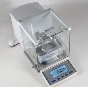 2、測量空氣中重量完成之后,將樣品放入量測籃上的抗浮架之下待穩(wěn)定后即顯示視密度值