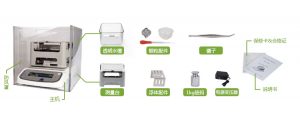①主機(jī)、②水槽、③測(cè)量臺(tái)、④鑷子、⑤說明書、⑥砝碼、⑦防風(fēng)防塵罩、⑧測(cè)顆粒配件一套、⑨測(cè)浮體配件一套、⑩電源變壓器一個(gè)